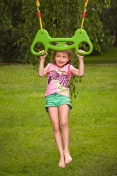 Freude für Eltern und Kinder: Eltern schätzen Qualität und Sicherheit, Kinder wiederum dynamisches Spiel und die Möglichkeit, ihre Geschicklichkeit zu verbessern. Die verstellbare Seillänge ermöglicht die Anpassung an die Körpergröße des Kindes und den jeweiligen Aufhängeort.