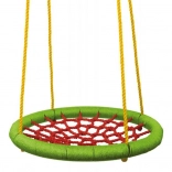 Das fröhliche, farbenfrohe Design der Schaukel mit rotem Sitz und grünem Rand zieht sofort die Aufmerksamkeit jedes Kindes auf sich.