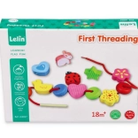 Textilschnur mit Holzenden zum einfachen Auffädeln, fördert die Feinmotorik.