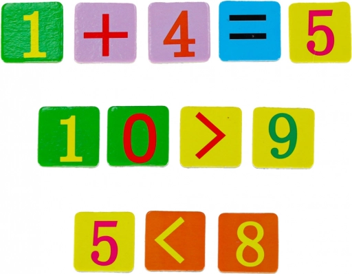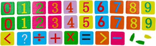 - Rechnen als Spiel: magnetische Ziffern und mathematische Zeichen für einfache Übungen.