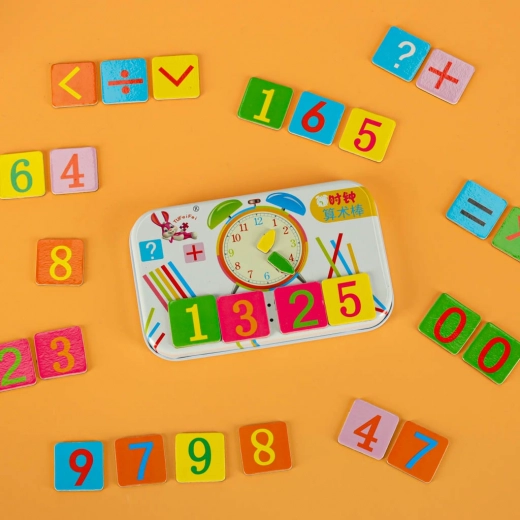Das Set eignet sich hervorragend für das visuelle Verständnis von Zeit und grundlegenden Rechenaufgaben – mithilfe der Kärtchen mit Zahlen und Zeichen üben Kinder Addition und Subtraktion. Dank der kompakten Abmessungen lässt sich das Set überallhin mitnehmen – in den Kindergarten, zur Schule oder auf Ausflüge.