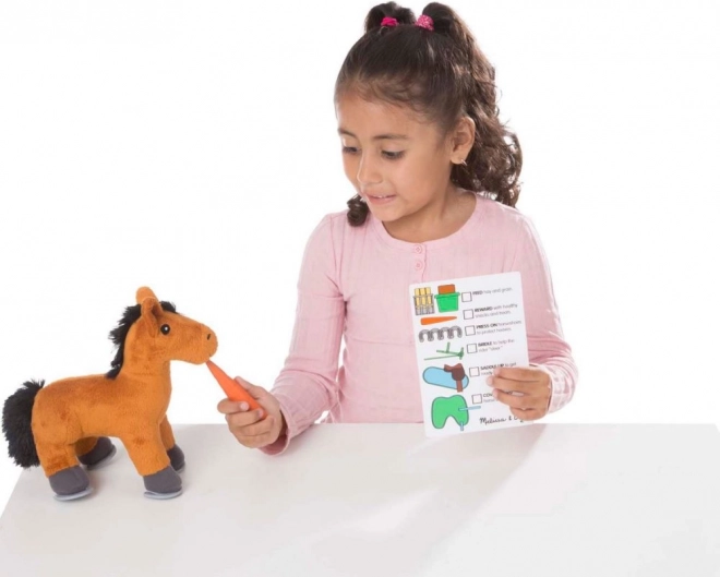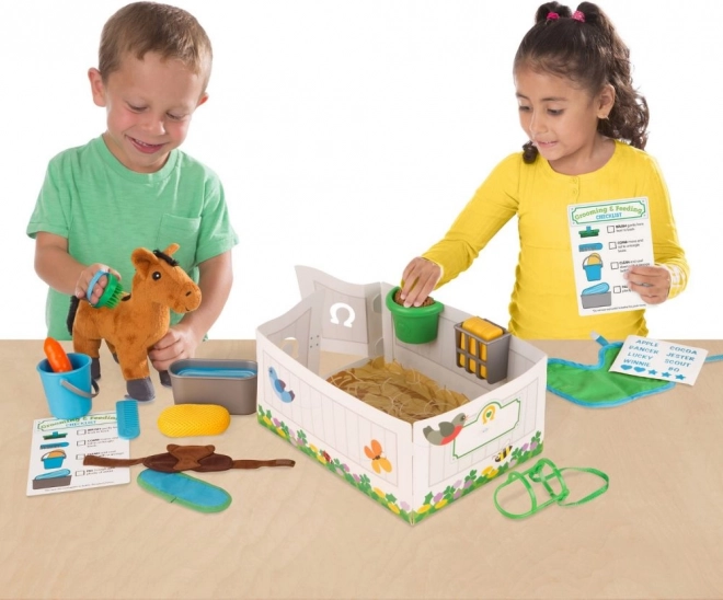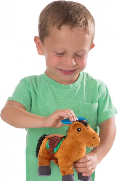 Das Spielzeug fördert die Entwicklung von Empathie, Rollenspiel und Fantasie. Kinder können das Pferdchen bürsten, füttern und in den kleinen Stall legen, wobei sie einfachen Aufgaben-Kärtchen folgen. Das Set ist für Kinder ab 3 Jahren geeignet und entspricht der CE-Norm.