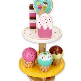 Dieser Holzstand ist mit vielen bunten Eiscremes und Eislutschern ausgestattet, die wie echt aussehen. Er ist so gestaltet, dass er die fantasievolle Spielweise der Kinder anregt.