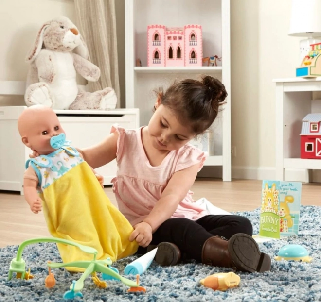 Das Set zum Einschläfern von Puppen und Plüschtieren ist das perfekte Zubehör für Kinder, die Rollenspiele lieben und sich um ihre Spielzeuge kümmern. Es enthält verschiedene Elemente, die helfen, die kindliche Fantasie und feinmotorische Fähigkeiten zu entwickeln.