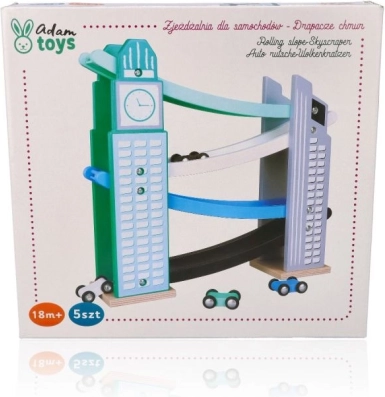 Dieses Spielzeug ist für Kinder ab 18 Monaten geeignet und so konzipiert, dass es alle Sicherheitsstandards erfüllt. Dank der liebevollen Details wie gemalten Fenstern und einem Design, das an echte Stadtgebäude erinnert, zieht das Spielzeug die Aufmerksamkeit auf sich und lädt zum wiederholten Spielen ein.