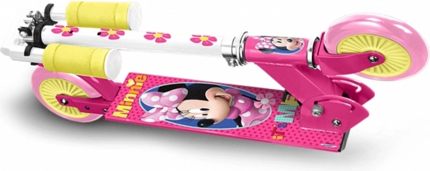 Der Roller besticht durch seine leuchtend rosa Farbe mit gelben Akzenten und hübschen Bildern von Minnie Mouse, die jedes Kind sofort in ihren Bann ziehen.