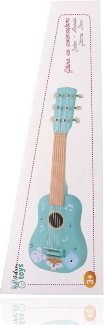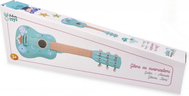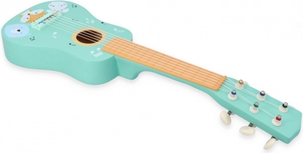 Holzgitarre für Kinder mit Tiermotiven, türkis