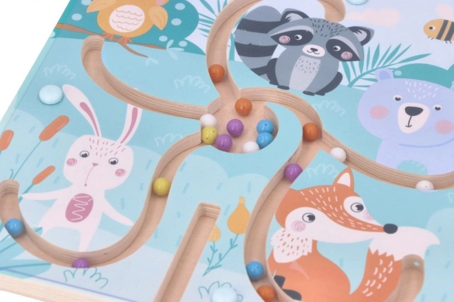 Fünf farbige Kugeln motivieren Kinder zum Sortieren und Zuordnen, fördern die Logik, die visuelle Wahrnehmung und die Fähigkeit, die Route durch das Labyrinth zu planen.