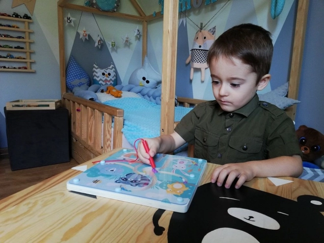 Das fröhliche magnetische Labyrinth mit Waldtieren macht Lernen zum Spiel. Mit dem Magnetstift führt das Kind die Kügelchen durch verschlungene Pfade, ordnet Farben zu und trainiert Konzentration und Genauigkeit. Durch die geschlossene Ausführung gehen die Kügelchen nicht verloren und das Spiel ist zu Hause wie auch unterwegs sicher.