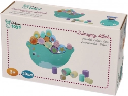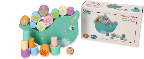 Entdecken Sie ein unterhaltsames Holz-Balancespiel mit einem Narwal, in dem Kinder bunt gestaltete Zylinder mit Meerestier-Motiven auf einer Wipp-Basis ausbalancieren. Ziel ist es, die Balance zu halten und die Teile so zu stapeln, dass der Narwal nicht kippt – ein großartiges Training für die Feinmotorik, die Hand-Auge-Koordination und die Geduld.