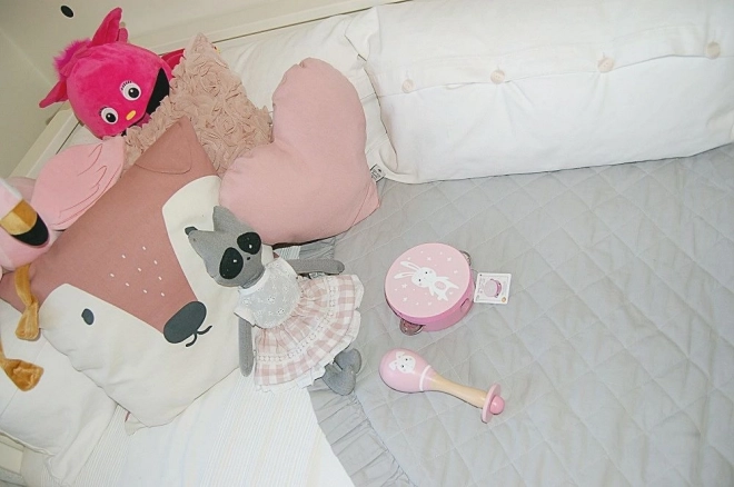 Lassen Sie die Welt der Kinder mit sanften Tönen erklingen – mit dieser Holz-Maraca in zartem Rosa mit Hasenmotiv. Das sichere Rasselspielzeug für Babys ab 5 Monaten fördert die Entwicklung des Hörsinns und der Feinmotorik, hat glatte, abgerundete Kanten und ist CE-zertifiziert. Die ideale Größe 18 × 6 cm liegt gut in kleinen Händchen.