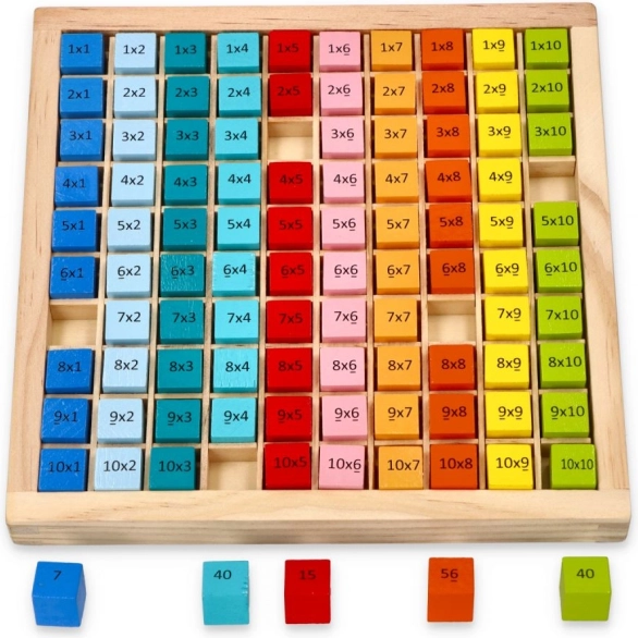 Diese farbenfrohe Lernhilfe unterstützt Kinder dabei, sich das Einmaleins von 1–10 spielerisch anzueignen. Jeder Würfel ist übersichtlich beschriftet, und dank der Farben erkennen Kinder Muster und Zusammenhänge schneller. Perfekt zum Üben zu Hause und für den Kindergarten.