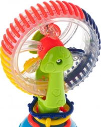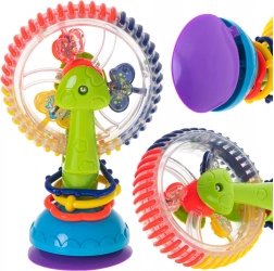 Dieses interaktive Babyspielzeug bietet drehbare Elemente, Kügelchen mit Rasseleffekt und einen starken Saugnapf, der es sicher an Ort und Stelle hält. Fröhliche Farben und rotierende Teile ziehen die Aufmerksamkeit auf sich und fördern Konzentration sowie Auge-Hand-Koordination.