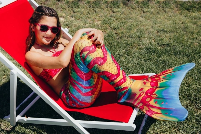 Das Design des lebendig bunten Schwanzes mit Monoflosse ahmt die Bewegungen einer Meerjungfrau im Wasser nach.