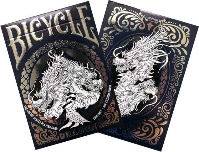 Dieses Kartenspiel-Deck Dragon feiert einige der ältesten mythologischen Wesen, die in Kulturen von Europa bis nach China vorkommen. Drachen sind ein Symbol für Stärke, Glück und den Schutz von Schätzen und daher ein ideales Motiv für elegantes, atmosphärisches Spiel.
