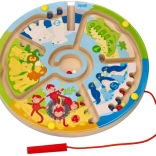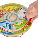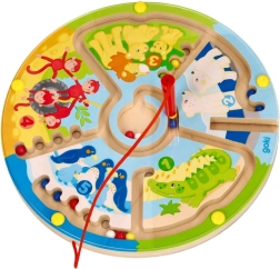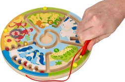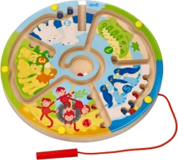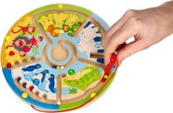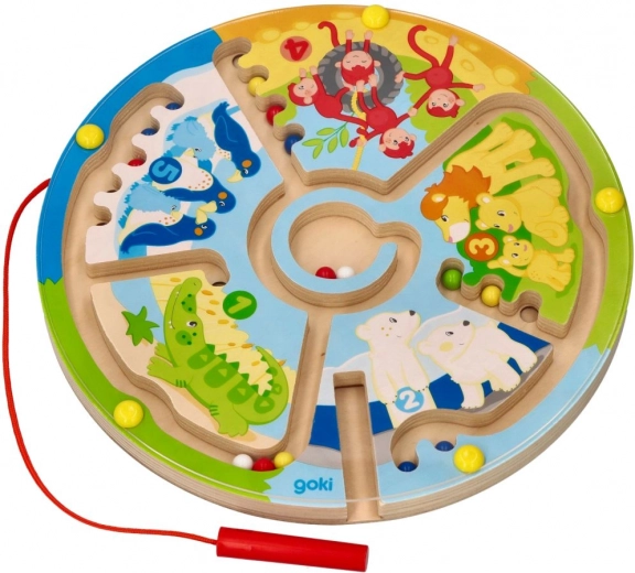 Entdecken Sie das Lernen durch Spiel. Kinder führen mit dem Magnetstift bunte Kugeln durch die verschlungenen Wege des Labyrinths – auf zwei Arten: klassisch bis zum Ziel oder sortiert nach Farben und Zahlen. Zootiere und die Zahlen 1–5 ziehen kleine Spieler ins Geschehen und motivieren sie ganz natürlich zum Zählen und zur Konzentration.