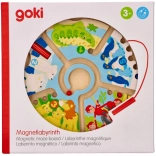 Die massive Holzplatte mit transparentem Plexiglas sorgt für Sicherheit – die Kugeln bleiben innen, der Stift ist mit einem Band befestigt, sodass nichts verloren geht. Bewährte GOKI-Qualität, ungiftige Farben und der praktische Durchmesser von 23 cm machen dieses Magnetspiel zum idealen Begleiter für Zuhause und unterwegs.