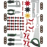 Im Set ist alles für die ersten Heimwerkerprojekte enthalten – von der Säge und dem Hammer über Feilen und Schlüssel bis zu Schrauben, Muttern und Verbindern. Das Spiel mit der Werkstatt fördert Auge-Hand-Koordination, logisches Denken und Geduld und sorgt zugleich für stundenlangen Spielspaß.