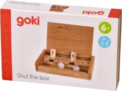 Das kompakte Holzspiel Shut the Box von Goki ist ideal für unterwegs und zu Hause. Mit zwei Würfeln und klappbaren Plättchen 1–9 fördert es Rechnen, Strategie und Konzentration. Es spielen 2 oder mehr Personen; Ziel ist es, so viele Zahlen wie möglich zu schließen und die niedrigste Summe der verbleibenden Plättchen zu erreichen.