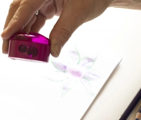 Dank der doppelten Funktion und der transparenten Abdeckung bietet der Schleifer problemfreies Anspitzen und Auffangen der Späne.