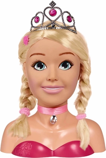 Dieser bezaubernde Stylingkopf mit langem blonden Haar und rosa Schleife mit Steinchen ist ideal für kleine Friseurinnen und Visagistinnen. Dank des Zubehörsets – von der silbernen Krone über Bürste, Haarspangen und Haargummis bis hin zur Make-up-Palette – kreieren Kinder mühelos märchenhafte Frisuren und zartes Make-up.