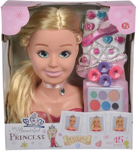 Entfalten Sie die Kreativität der Kinder mit dem eleganten Stylingkopf PRINCESS der Marke SIMBA. Langes blondes Haar, reichhaltiges Zubehör und eine Make-up-Palette ermöglichen unzählige Frisuren und Verwandlungen und fördern dabei Feinmotorik, Vorstellungsvermögen und Sinn für Ästhetik.