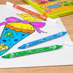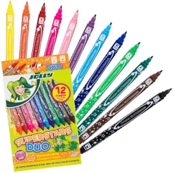 Diese doppelseitigen Marker bieten vielseitige Einsatzmöglichkeiten: feine Spitze für Details und Beschriftungen, breitere Spitze zum Ausfüllen von Flächen und für markante Striche. Das Set enthält 12 satte Farben, die sich hervorragend kombinieren lassen und jedem Projekt einen professionellen Look verleihen.