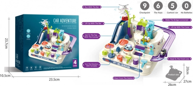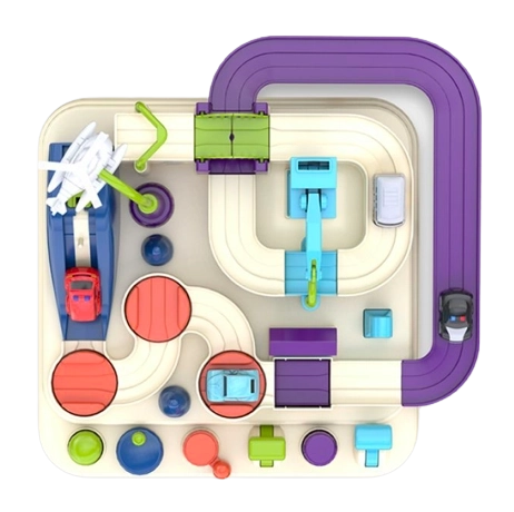 Bedientasten und Drehräder geben Kindern die Kontrolle über Hubplattformen, bewegliche Plattformen und die Brücke. Das Spiel fördert Planung und Entscheidungsfindung – kleine Rennfahrer müssen überlegen, wie sie die Strecke am besten meistern und Fallen überwinden.