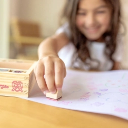 Stempelsets Schmetterlinge und Herzchen: Alle Elemente sind in einer eleganten Holzbox untergebracht, die nach kreativem Spielen einfach aufzuräumen ist. Diese Stempelsets bieten unbegrenzte Möglichkeiten für verschiedene kreative Projekte.