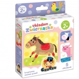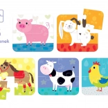 CzuCzu Puzzle Tiere Zusammenstellen bringt ein Set von fünf Puzzles mit Motiven von beliebten Kindertieren: Pferdchen, Kuh, Küken, Ferkel und Hase. Sie sind perfekt für die Entwicklung der kindlichen Koordination und des logischen Denkens schon in jungen Jahren.