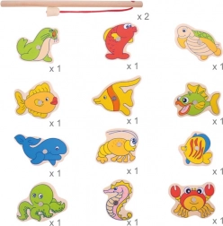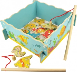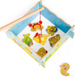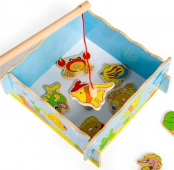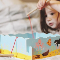 Greift zur Angel und taucht ein in die Unterwasserwelt! Dieses magnetische Holzspiel vereint Spaß und Lernen – Kinder trainieren die Feinmotorik, die Hand-Auge-Koordination und die Geduld. Das Set enthält 12 Meerestiere, 2 Angeln und eine stabile Holzbox in Aquarienform. Ideales Spielzeug für Kinder ab 3 Jahren aus hochwertigem Holz mit sicheren Farben.