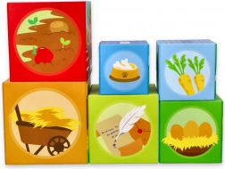 Dieses farbenfrohe Set aus Stapelwürfeln mit Bauernhofmotiven bietet Kindern unendlich viele Spielmöglichkeiten: vom Bauen eines hohen Turms über Stecken und Sortieren bis hin zum Entdecken von Zahlen, Früchten und niedlichen Tieren. Jeder Würfel ist so gestaltet, dass er visuelle Wahrnehmung, Form- und Mengenerkennung sowie erstes Zählen fördert.