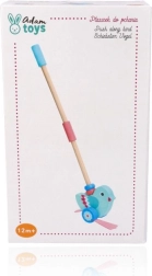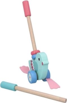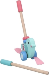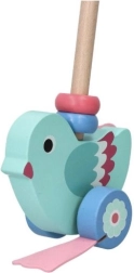 Dieser wunderschöne Holzvogel zum Schieben ist so gestaltet, dass er Kindern ab 12 Monaten hilft, ihre motorischen und gleichgewichtigen Fähigkeiten zu entwickeln. Dank des abnehmbaren Stabs, der 48 cm lang ist, lässt sich das Spielzeug leicht schieben und handhaben. Der Gesamtdesign kombiniert einen türkisen Körper und rosa Flügel, was die kindliche Fantasie und Farbensinn anregt.