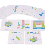 Zugehörig sind Karten mit Aufgaben verschiedenen Schwierigkeitsgraden. Kinder können jedoch auch eigene Muster nach ihrer Fantasie entwerfen.