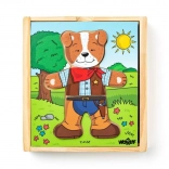 Das Anzieh-Puzzle mit Hündchenmotiv ist ein ideales didaktisches Spielzeug für die ersten Puzzelerfahrungen. Kinder können dem Hündchen verschiedene Outfits anziehen, Farben und Muster kennenlernen und ihre Kreativität beim Erzählen von Geschichten entwickeln. Das kleine Format passt in jede Tasche oder den Kinderrucksack für unterwegs.