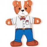 Das Anziehen des Hündchens motiviert Kinder zur feinmotorischen Handhabung der Teile und fördert Motorik sowie Hand-Auge-Koordination schon ab 1 Jahr.