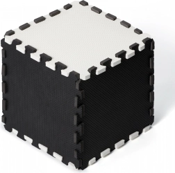 Die Luno-Puzzlematte in zeitlosem Schwarz-Weiß macht jede Kinderecke zu einem bequemen und sicheren Spielort. Dank der Stärke von 1,2 cm dämpft sie Stöße und Geräusche und isoliert zuverlässig gegen kalte Böden – ideal für Laminat, Fliesen oder Linoleum.