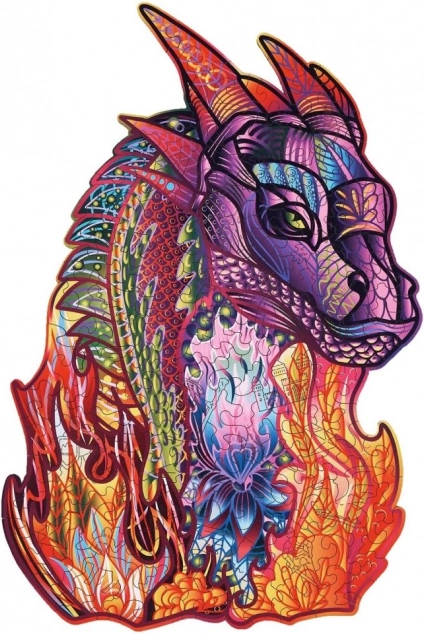 Dieses Holzpuzzle mit Drachenmotiv besticht durch kräftige Farben und einzigartige Teilformen, die jedes Puzzelerlebnis zu etwas Besonderem machen. Geeignet ab 14 Jahren und nach der Fertigstellung eine stilvolle Dekoration für Zimmer oder Büro.