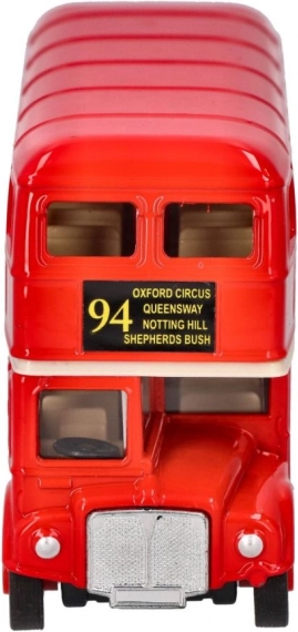 Entdecke den ikonischen roten Bus, der in keiner Kindergarage und keiner Sammlung fehlen darf. Die Metallkarosserie mit detailreicher Ausarbeitung und realistischen Elementen erinnert täuschend echt an den Londoner Doppeldecker. Dank der kompakten Maße ideal für Zuhause und unterwegs.