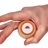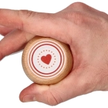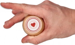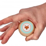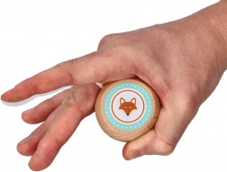 Der hochwertige Holzkörper mit fröhlichen Motiven (Fuchs, Herz, Pilz u. a.) liegt angenehm in der Hand und lädt zum Spielen ein.