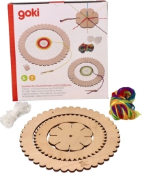 Dieses hochwertige Goki-Strickset aus Holz bietet Kindern und Erwachsenen ein beruhigendes Erlebnis mit Handarbeit. Dank der runden Rahmen mit Durchmessern von 22, 16 und 10 cm sowie dem Blumenstricker lassen sich im Handumdrehen originelle Mandalas, Untersetzer, Dekorationen und kleine textile Accessoires herstellen. Das Set fördert Konzentration, Hand-Auge-Koordination und ästhetisches Empfinden.