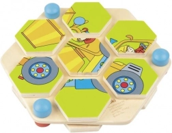 Holz Sechseck Puzzle Baustellenfahrzeuge Goki