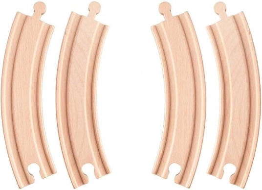 Erweitern Sie Ihre Holz-Eisenbahn mit langen Eisenbahnkurven und gestalten Sie dynamischere Strecken. Das Set enthält 4 Stück gebogene Schienenteile mit einer Länge von 18 cm pro Teil. Ideal für Kinder ab 3 Jahren und kompatibel mit gängigen Holz-Eisenbahnsystemen.