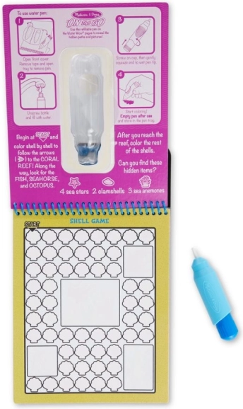 Das interaktive Wasser-Malbuch aus der On the Go-Serie bietet Kindern stundenlangen kreativen Spaß. Der nachfüllbare Wasserstift enthüllt auf den Seiten die Unterwasserwelt, Aufgaben und Labyrinthe, die nach dem Trocknen wieder verschwinden – und das Malen kann von vorn beginnen.