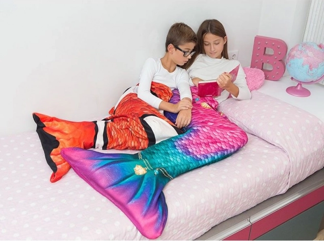 Wir präsentieren Ihnen eine stilvolle und bequeme Decke, die jeden momentanen Ausflug in die Märchenwelt belebt. Dank ihrer weichen Textur und der farbigen Muster hält sie auch an den kältesten Tagen warm. Sie bietet nicht nur Komfort, sondern bringt auch ein Stück Magie in Ihr Zuhause. Ideal zum Entspannen auf Sofa oder Bett, diese Decke imitiert die elegante und bezaubernde Form einer Meerjungfrau.