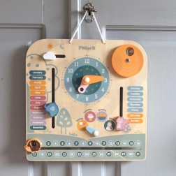 Holzkalender und Uhr PolarB ist ein einzigartiges Bildungswerkzeug, das Freude und Wissen bringt. Es bietet verschiedene Bildungselemente: