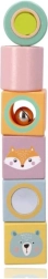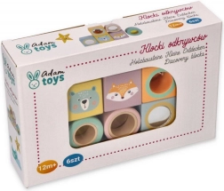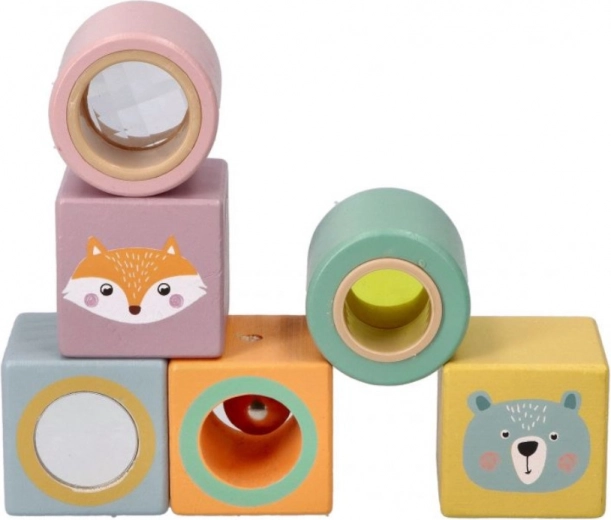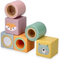Die Bausteine sind mit fröhlichen Illustrationen von Tieren wie Fuchs und Bär verziert, was dem Spiel eine neue Dimension der Unterhaltung und Kreativität verleiht.
