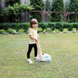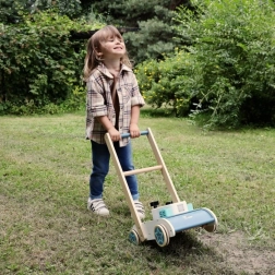Mit dem Rasenmäher von Adam Toys kann jedes Kind ein kleiner Gärtner werden, der sich mit Freude auf abenteuerliche Gartenarbeit einlässt.