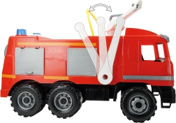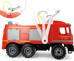 Das riesige Feuerwehrauto LENA Giga Trucks Actros bringt realistische Action für kleine Helden. Die stabile Konstruktion mit verzinkten Stahlachsen, das drehbare Dach-Wasserrohr und die starke Kolbenpumpe sorgen für großartigen Spielspaß zu Hause und im Garten.