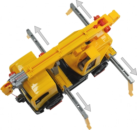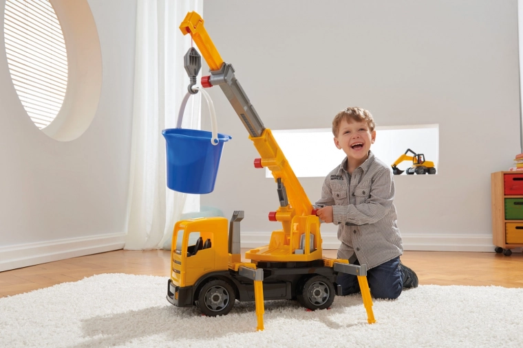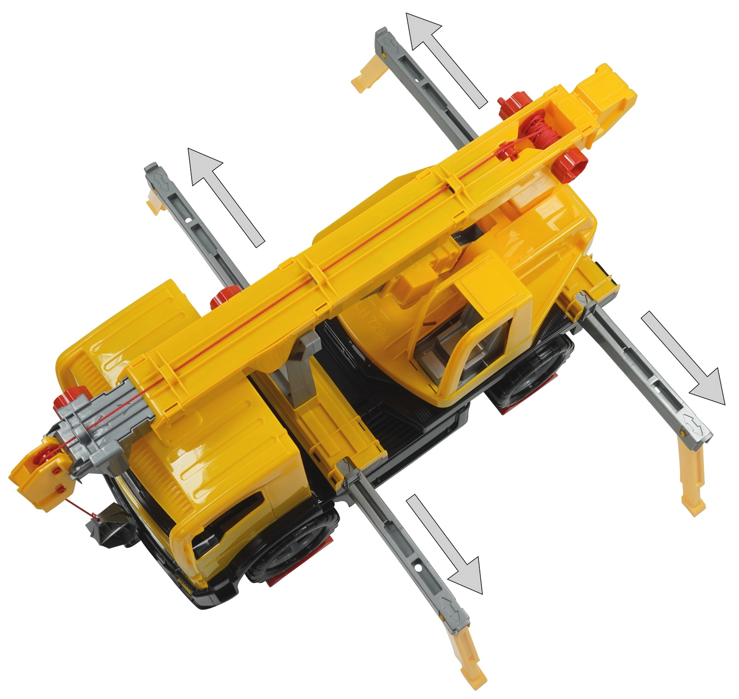 Der lange, ausziehbare Ausleger mit präziser mechanischer Steuerung ermöglicht das Heben und Absenken von Lasten wie auf einer echten Baustelle.